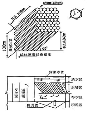 3、當(dāng)斜管管長為1米時,有效負荷按3-5噸/米2·時設(shè)計。V0控制在2.5-3.0毫米/秒范圍內(nèi),出水水質(zhì)*佳。