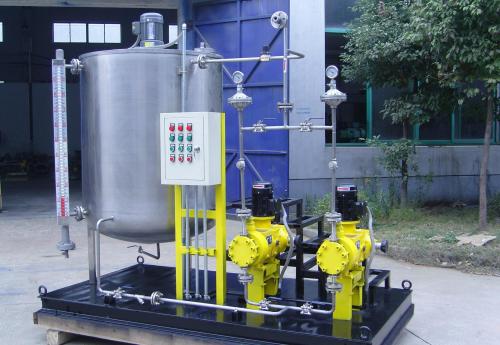 加藥裝置是是一種具投藥、攪拌、輸送液體、自動控制與一體的成套設備,它被廣泛應用于電廠的原水、鍋爐高壓給水、循環(huán)冷卻水、油田地面集輸脫水處理系統(tǒng),石油化工各種加藥系統(tǒng)和廢水處理系統(tǒng)。如投加混凝劑、磷酸鹽、氨液、石灰水、水質穩(wěn)定劑(緩蝕劑)、阻垢劑、液體殺蟲劑等。