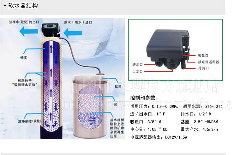 單閥單罐系統(tǒng)選型表(即一個(gè)樹脂罐、一個(gè)多路閥、一個(gè)鹽箱,系統(tǒng)再生時(shí)停止出水)